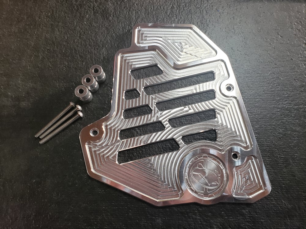 MACHINED FROM 1/4" ALUMINUM PLATE, COMES WITH ALUMINUM SPACERS AND STAINLESS STEEL HARDWARE FOR AN ENJOYABLE EASY INSTALL.